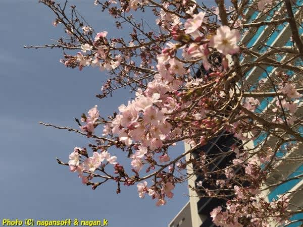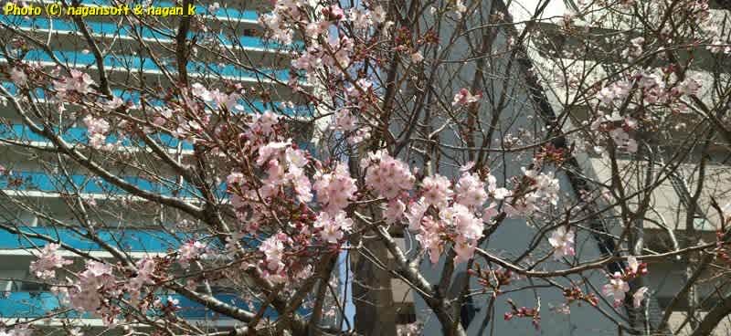 駅前にあるマンションそばの公園にて桜が咲き始めました。