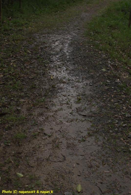 前日の大雨の影響で散策路がぬかるんでいるところあります。もちろんヌルヌルと滑ります。