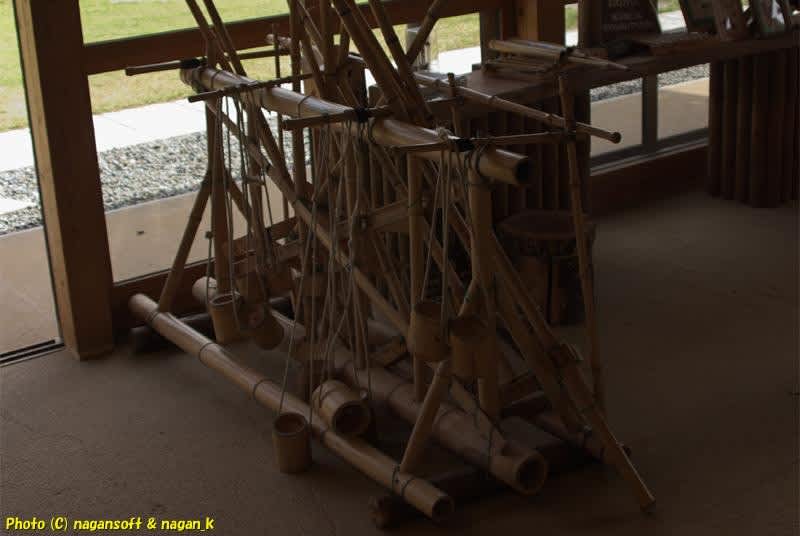 私が小さいころに遊んでいたミカンの空き缶に紐付けて缶下駄というていたやつ。それの竹バージョンです。