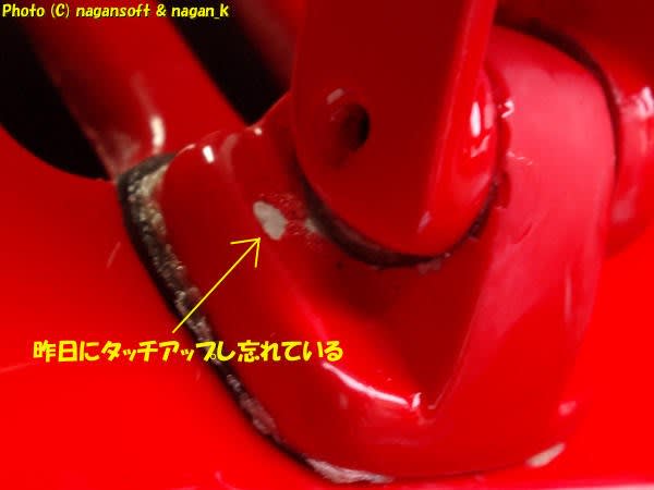 昨日にタッチアップし忘れていたらしい。この部分に塗装剥げがあるのは昨日に気づいていたよ。