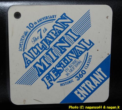 ちなみに、私のR-2で、昔にいろんなイベントに参加していたときの記念品のうち、痴呆親父のなんでも取り外して捨ててしまえの被害からなんとか免れたのが、「ALL JAPAN MINI FESTIVAL IN KOBE」の参加プレートだったりします。