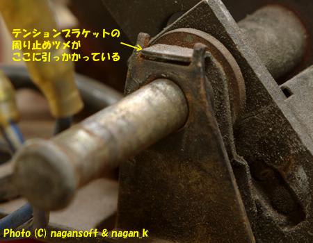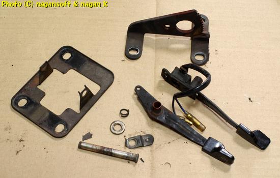 そのスプリングを利用して、ヒータースイッチにテンションをかけているブラケットが、上の部分で周り止めのツメをひっかけている。