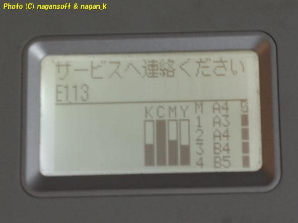 今までは、この手のエラーが出たときは、メンテナンスモードで一度起動して電源オフして、再度電源オンして通常モード起動で”E113エラー”は解除されて印刷できるようになったのですが今回は違いました。