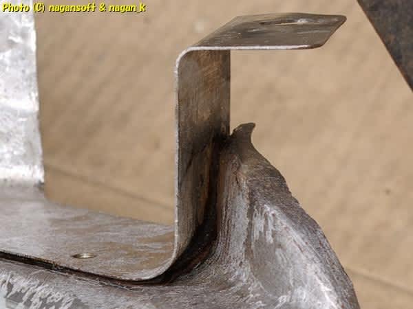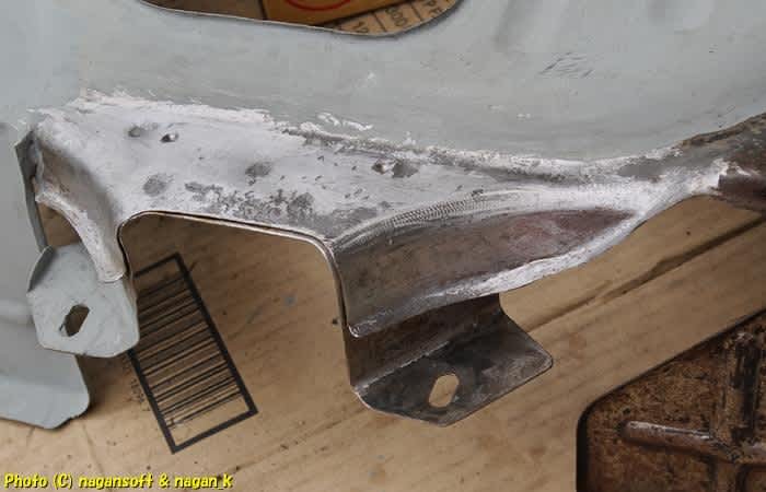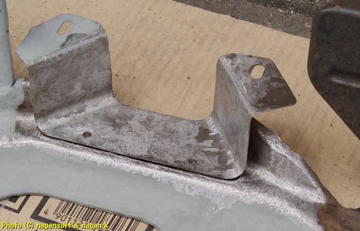 ちょっと前にボルト通し穴をハンダ板金修正した先端マウント部です。