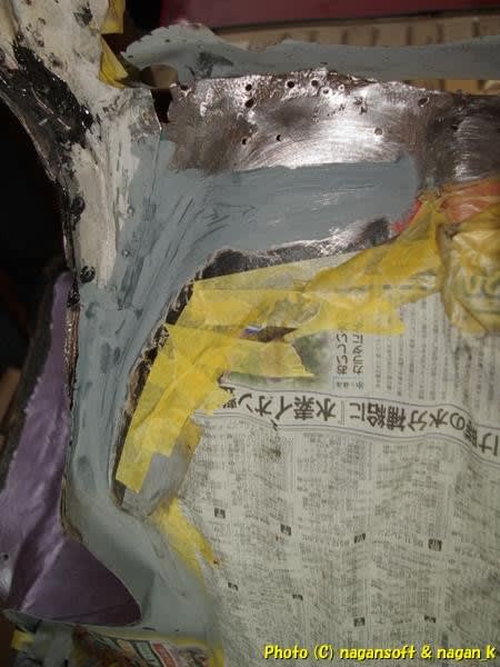 この部分もバルクヘッド鉄板との合わせ断面が見えていて錆がウヒョー。