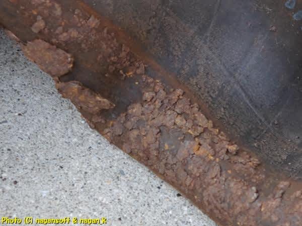 茶色は鉄の錆でした。白色はアルミの錆でした。って、結局のところ錆が食い込んでいたってことです。