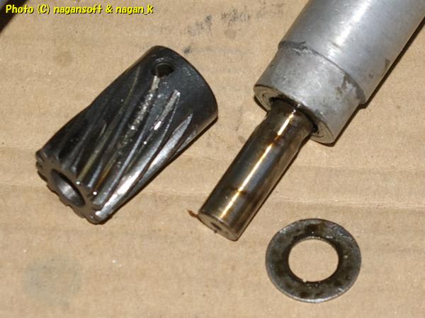 シャフトを抜いて驚いた。スラストベアリングが入っているのね。
