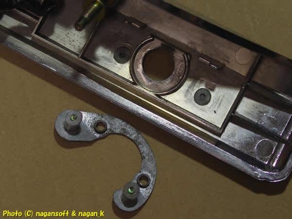 キーシリンダーがこんな小さい2箇所の樹脂飛び出し穴に固定されているのか。そりゃー強度ってどうなんよ?