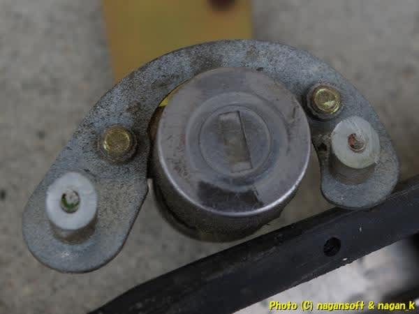 キーシリンダーって中に鍵いれて捻ったりするから左右にゆすられたり押し込まれたらするものだろうから、金属ステーやブラケットを介して車体に固定されていると思ってたんよ。それが外装の樹脂パーツにネジ立て込みでした。それも細い軸が2箇所だけです。