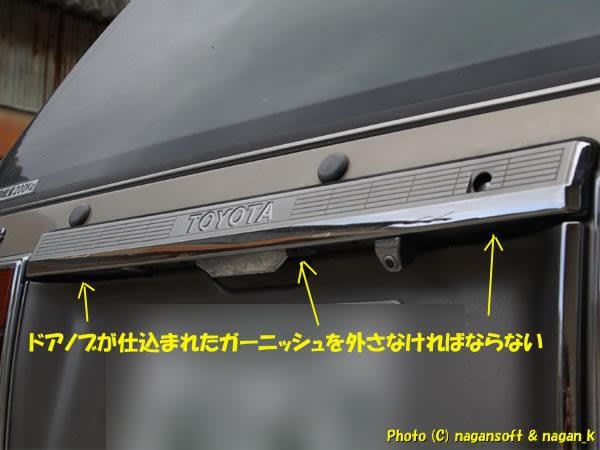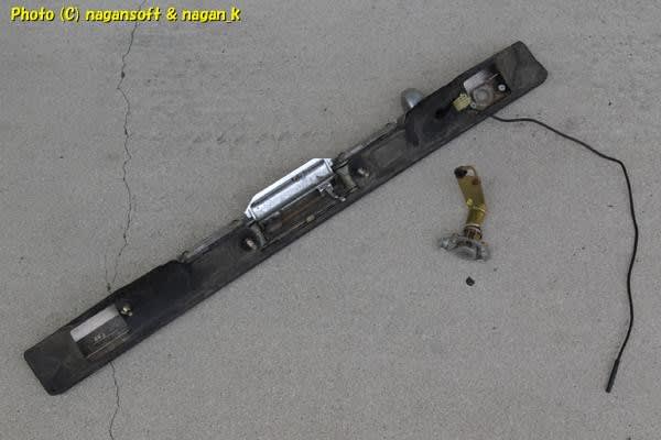 ドアノブ、キーシリンダー、ナンバー灯、バックカメラってものが仕込まれた横長のメッキされた樹脂パーツです。