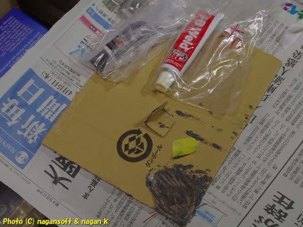 ボンドは、JBオートウエルドを用います。何ヶ月ぶりかに持ち出しましたが硬化しておらずよかったー。