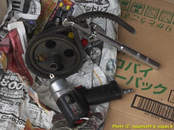 尚、激貧家庭に付き作業台というものがありません。車弄りはすべて地べたです。地べたに段ボールを敷いた上で作業するんです。