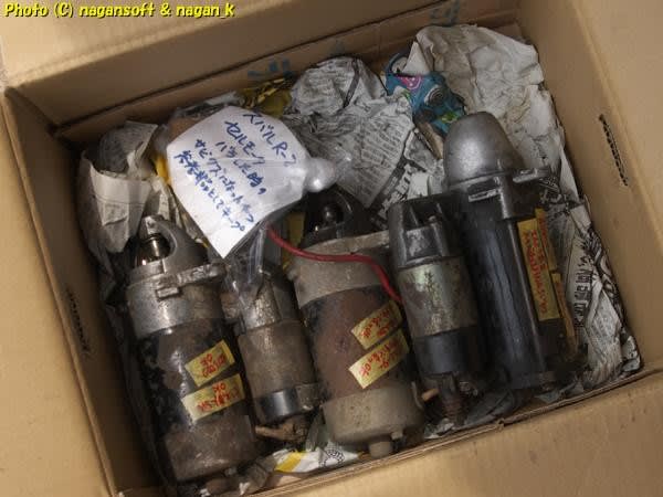 箱を開けたらセルモーターが3個。段ボール箱には5個と記録している。