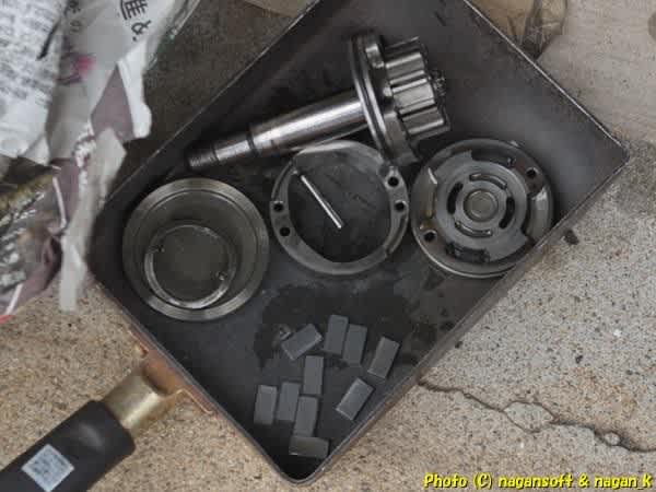 ふうーっ。オイルポンプの分解できたよ。分解だよね。破壊じゃないよね。
