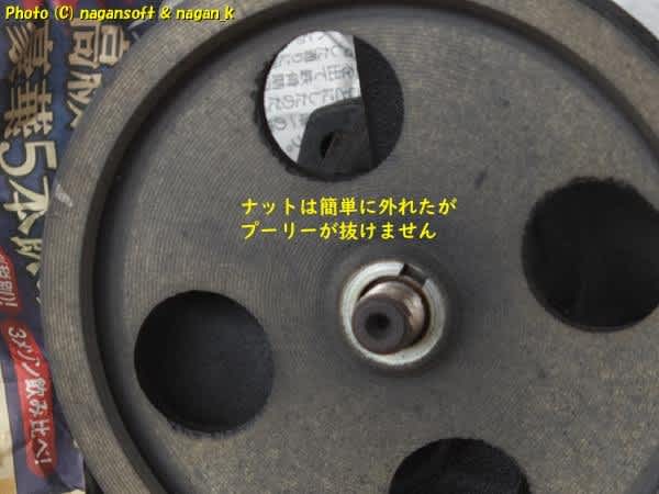 あっけなくナットは外れたんだけどプーリー自体がどうやっても外れません。