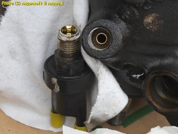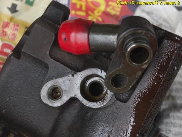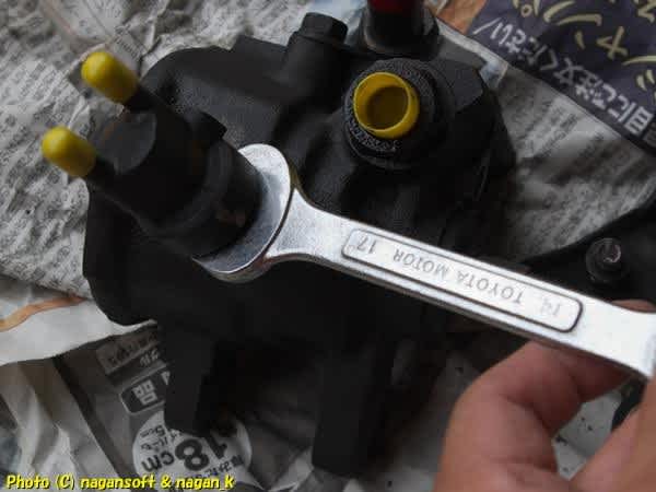 エアコントロールバルブを外したいのだけど、足でポンプを押さえて痩身の力でやっても緩みません。
