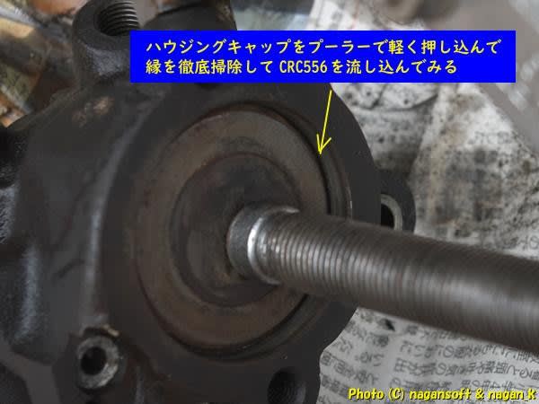 プーラーを押したり戻したりしてハウジングキャップを動かしつつCRC556を隙間に入れていきました。