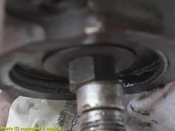 ハウジングキャップの隙間。つまりオイル滲みしていたところからスプレーのようにオイル噴き出しまき散らしで辺りを汚すだけで、まったく出てきません。