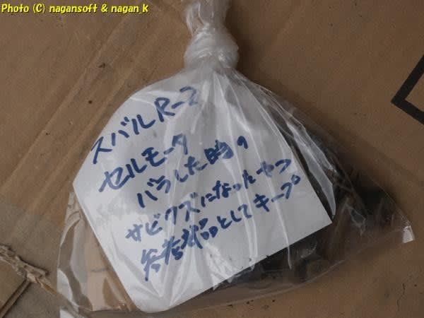いやいや、スバルの部品は何がいつどのようなことになって、いろんな苦悩(部品入手できないとか、流用部品の検討がつかないとか)いいかねないので、こういう錆クズでも価値を生みかねない。とキープしよう。袋詰めだよ。