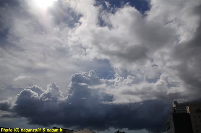 低い雲が渦を巻くのは積乱雲の端っこなのよ。