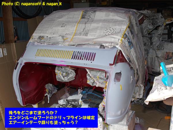 うーん、リヤエンジンルームからリヤフェンダーを経てドアのところまで塗ってやれってことかなー。