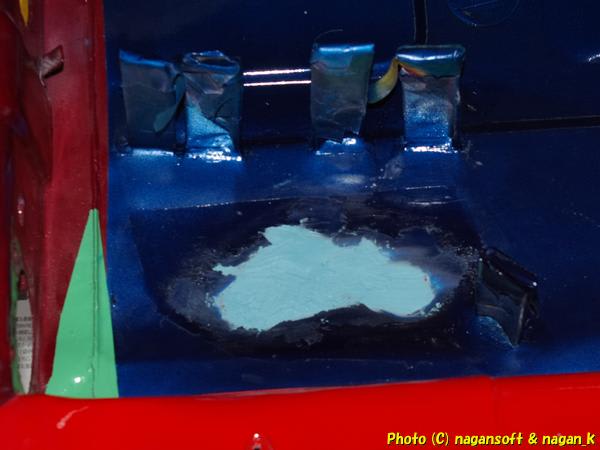 えーい。ディープブルーのウレタン塗料を被せてやれー。