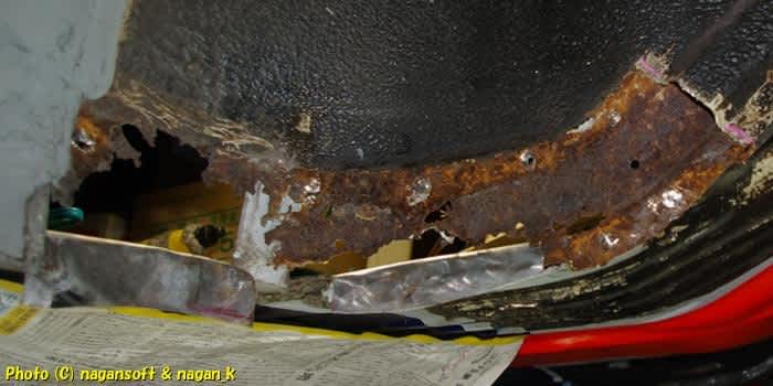 錆はどうしようもありません。そもそも錆で腐りまくって穴がドカーンなので切り取ることを考えます。
