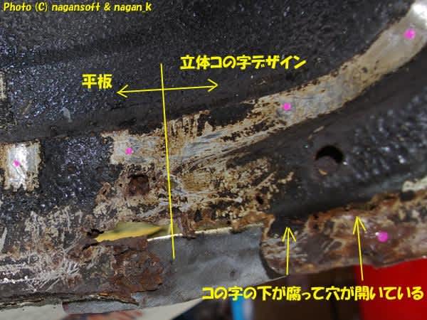 平板部分だけが錆びていたらよかったのですが、残念ながら、コの字部分も、コの字の下側が錆穴が開いているのです。