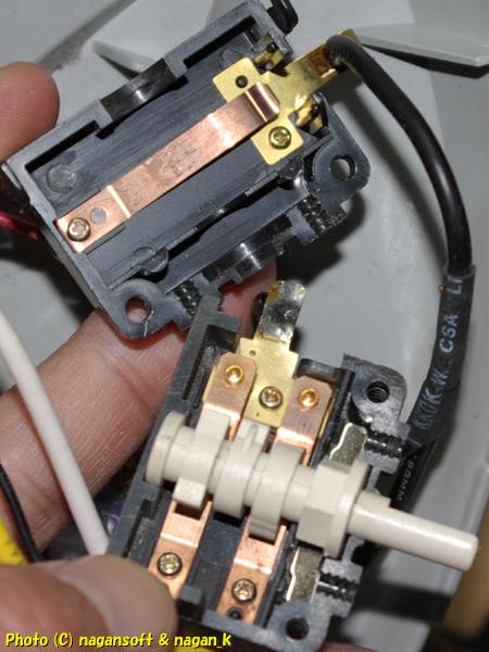 その箇所を、操作つまみを少し捻じるようにして切り替えると接触不良風に微妙に通電したりしなかったりするのです。