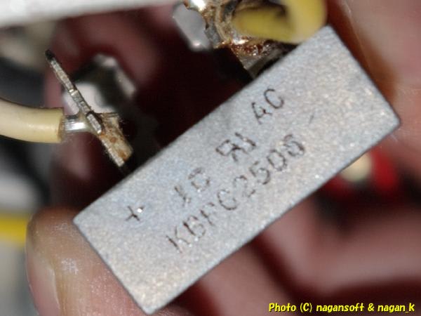 「弱」の時に、このブリッチダイオードっていう部品を通るんやけどな。こいつが壊れているみたいや。この部品で電流半分カットしよるねん。