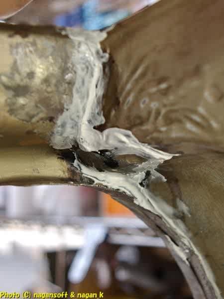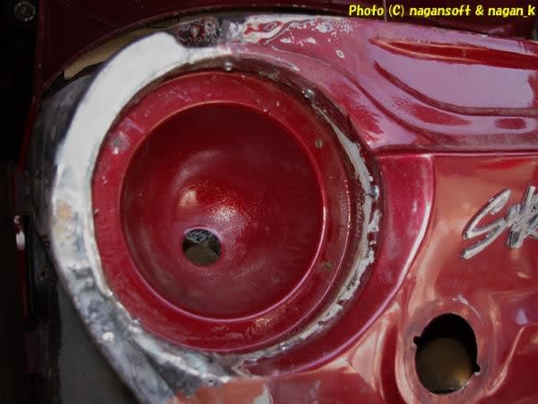 私の車体は元色がゴールドなんです。このお釜もゴールドでないといけないのですが下側になる部分は色が乗っていません。