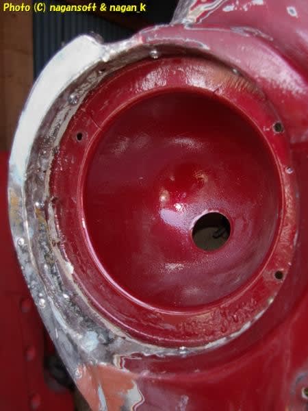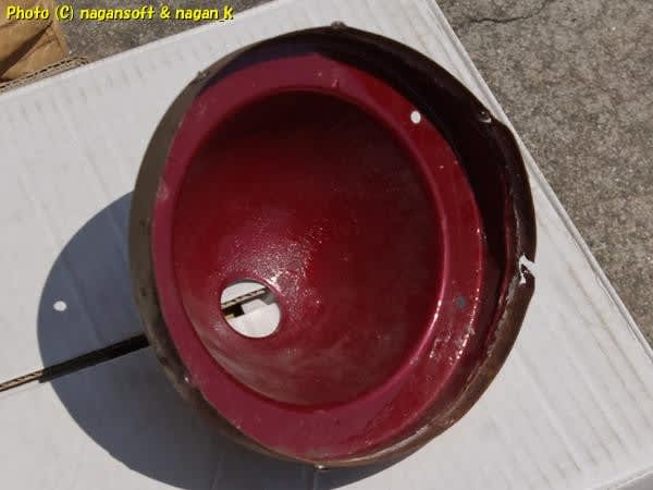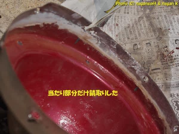 本日はこのお釜を嵌めて取り付けリベット穴加工を考えてますので、当たり部分となるところだけ錆取りしました。