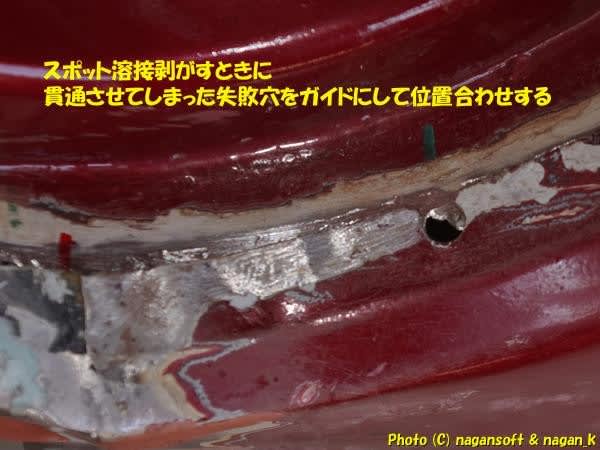 スポット溶接剥がすときに失敗ドリル貫通した穴をガイドに活用できました。