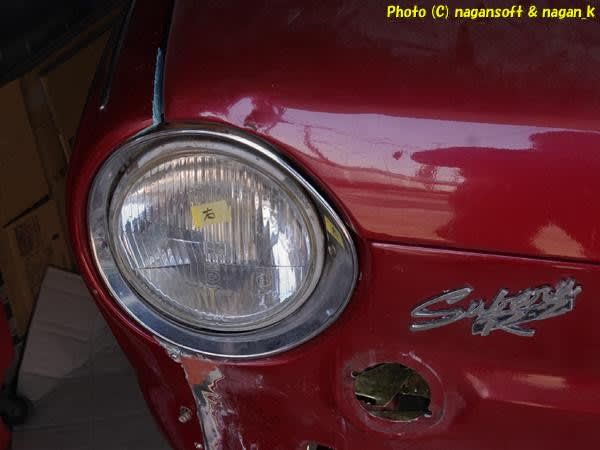 ライトを外して、フェンダーの縁をお手軽にハンマーでしばきたくりました。