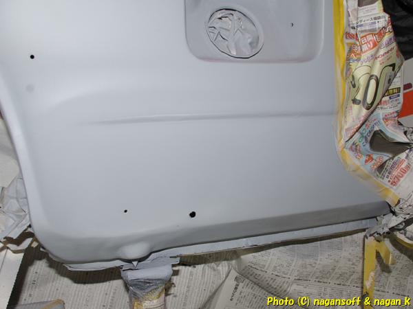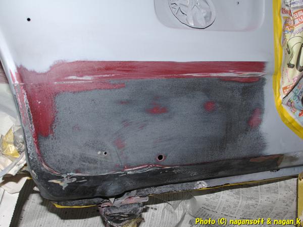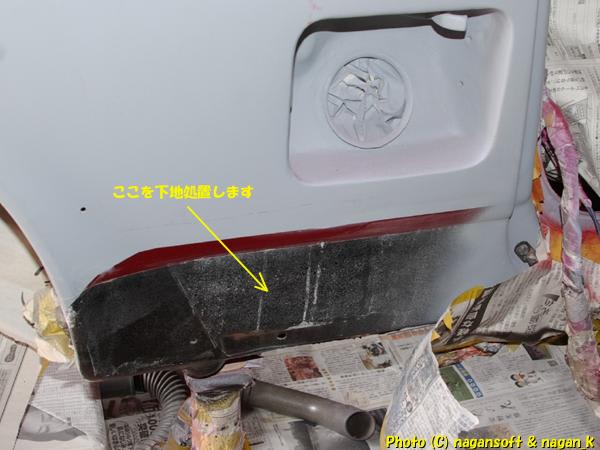 給油口の下部分の塗装下地処理するのを忘れていたサイドシルです。