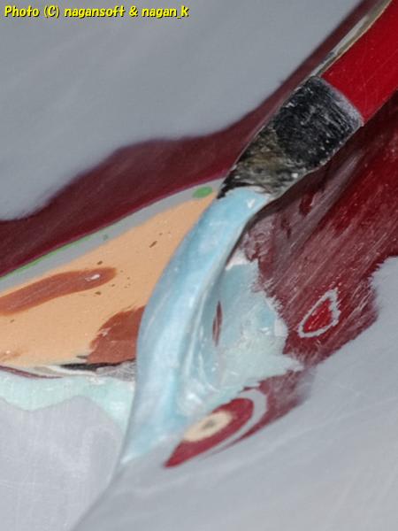 またパテ整形のやり直しです。整形した部分をつまんだらポキッと折れるかと思ったのですが指でグリグリするぐらいでは折れませんでした。2液パテって結構しっかりしているのね。と感心した次第です。