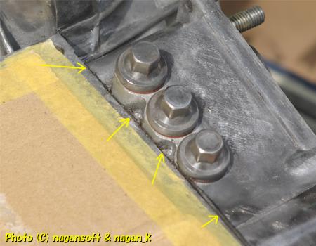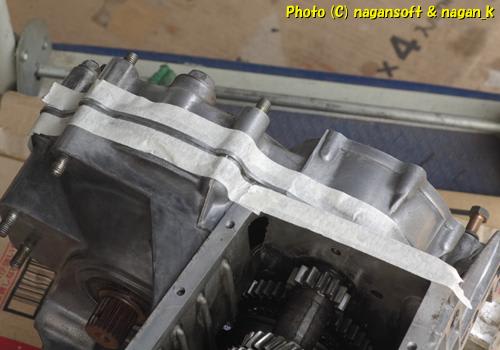 そして、ヘタレ志向の私は、ごまかし自動車整備の王道とでもいうのでしょうか?合わせ目の上からガスケットをなすくる作戦をするのです。