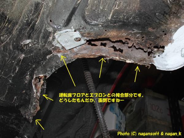 しかし、運転席フロアとエプロンのリンク部分をどうする。ここを処置すると実質右前フェンダー内も処置せなあかんのよねー。