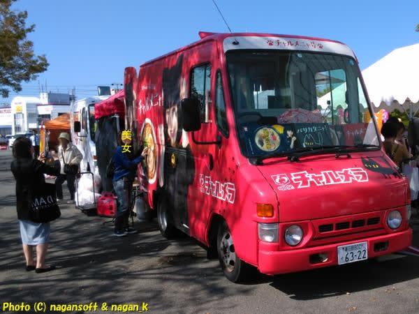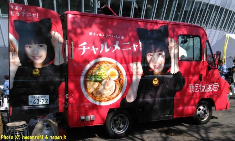 この車体は人気でして、インスタ女子と思われる方が、車体プリントのラーメンを指さして、美味そうな表情というか、おっさんから見たら中途半端にエロい顔を醸して撮影会が続いてました。