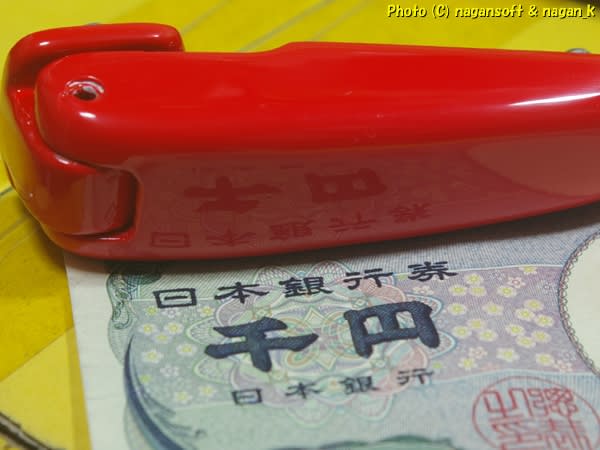 室内蛍光灯の明かりの下で1000円札の文字が写りこんでいるのがわかってもらえますか?