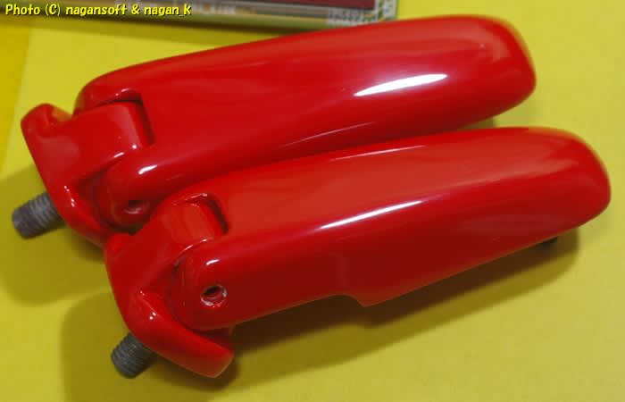 塗装しただけの状態で艶々に仕上がってますが、どうしても微妙なうねりのある塗装肌になっています。所詮、私の塗装が下手くそということなんです。
