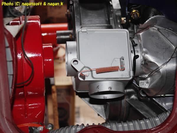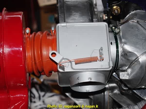 先ほど車体から降ろしたときのエンジン写真を出したでしょ。それを見てもらうとわかりますが地面に対して水平にヒーター切り替えバルブが取り付けられていたのよね。
