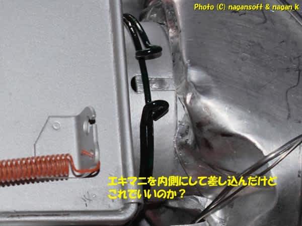 私から見えない反対側でホースの端をスプーン2本でゴソゴソとやってます。