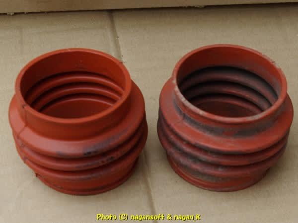 間違いなく、提供してもらった部品の方がゴムの質感はしっかりしています。車体から取り外して汚れたままだというのに私の蘇生したやつより程度がいいんです。