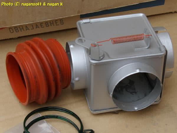 エキマニ呼び口がぐにゃぐにゃに曲げられて液体ガスケットを塗りこんでヒーター切り替えバルブを差込んでステンレスの太いホースバンドで固定。かつ、ホースバンドに針金をまいてエキマニに縛り上げてなんとか位置固定されていた。痴呆親父の創意工夫の産物だったんですよ。