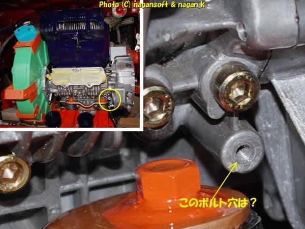 って、クランクケースにボルト穴が1個空いたままなのが気になります。