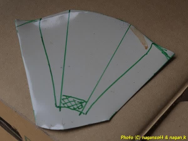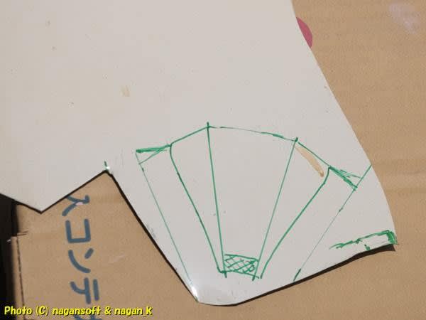 このカールを厚紙に写し取ってフロントパネルとの接する部分を決めます。