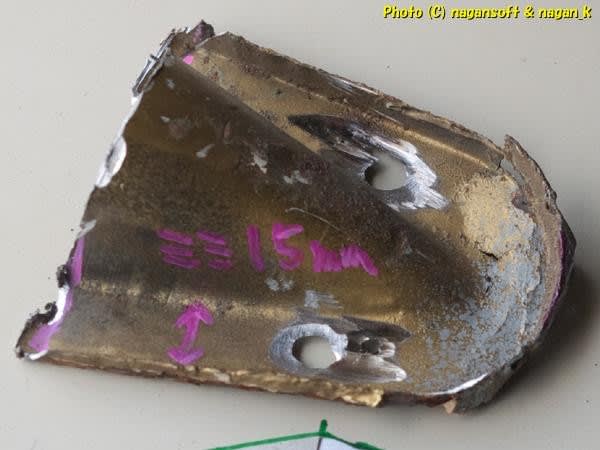 切り取っている錆クズなトンネルピースを持ち出しましてサイズ計測です。