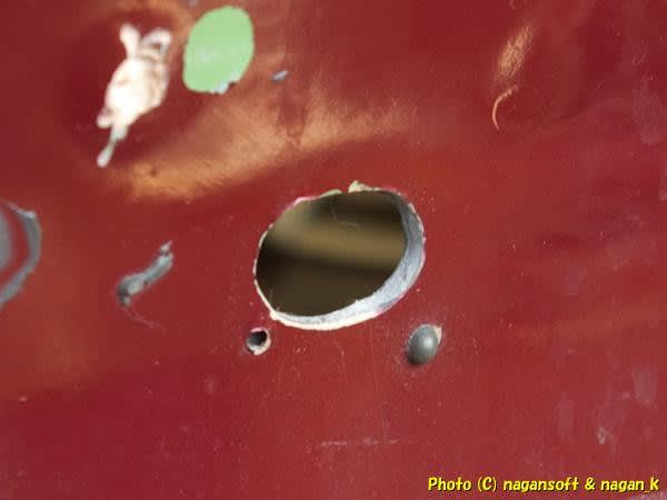 水抜き穴は薄板を貼り付けたことで塞がってます。(押し板固定ボルト通し穴が開いているだけ)