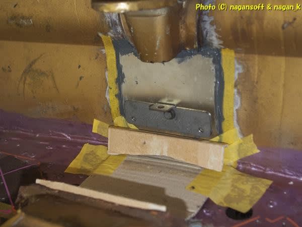 押し板固定ボルトはフロントパネル前にてマスキングテープを緩衝材に入れてナット締め上げだった。
